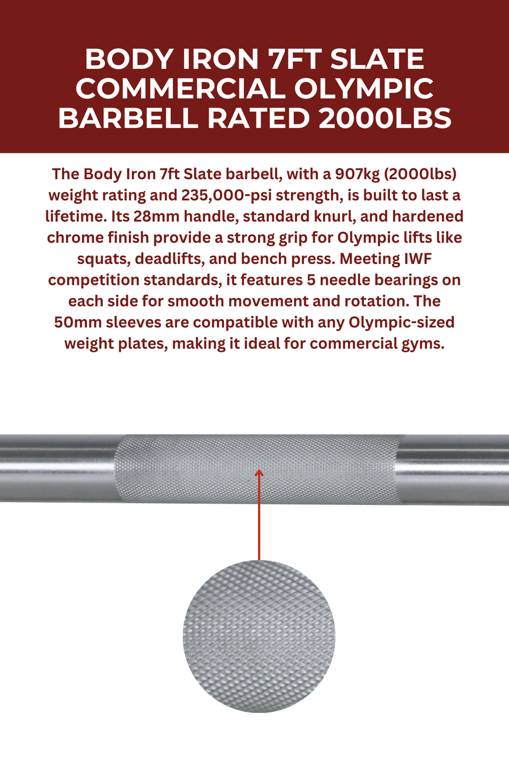 Body Iron 7ft Slate Commercial Olympic Barbell Rated 2000lbs