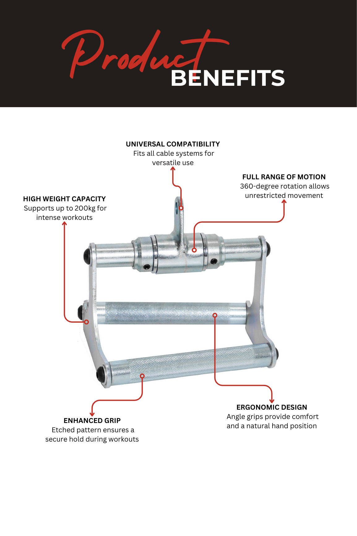 Constructed from durable commercial-grade steel, this bar offers strength and reliability for your cable exercises, featuring an etched pattern for extra grip and ergonomic angle grips for added comfort.
