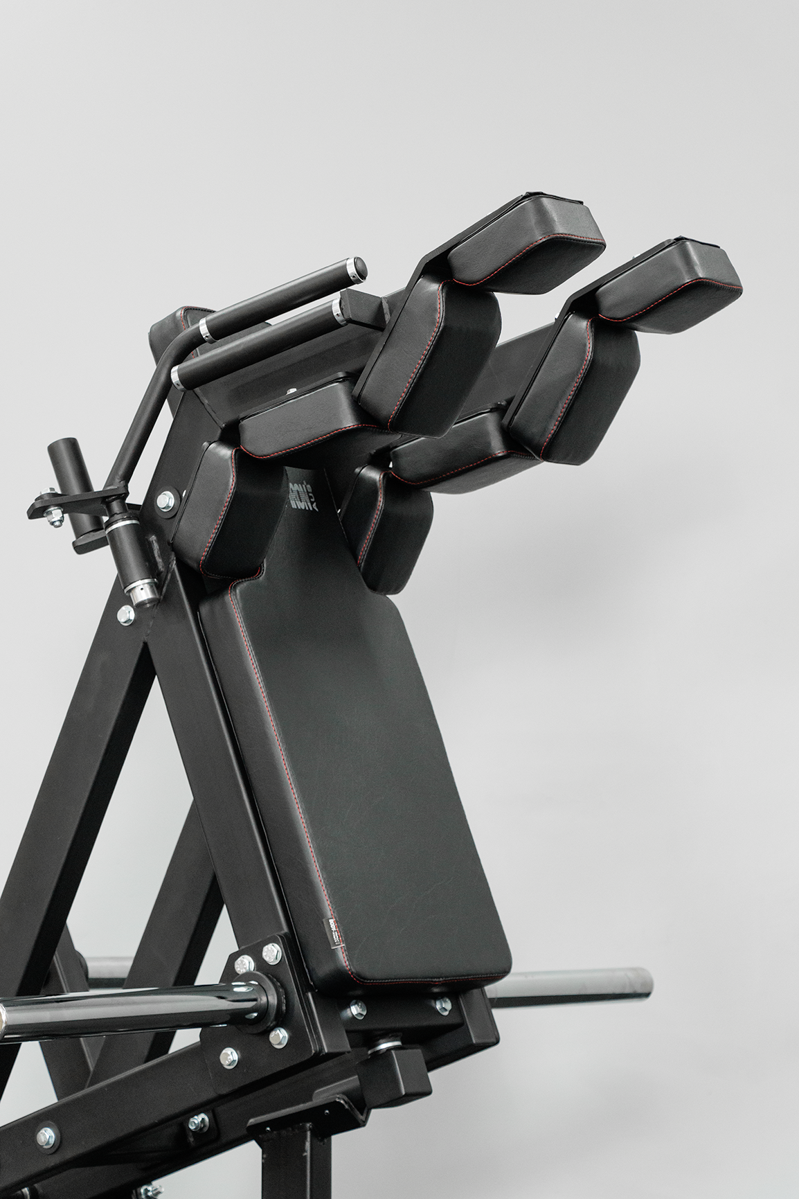 Experience the feel of free weights with shaped shoulder pads and an off-centre mounted pivot, designed to provide the most natural range of motion. Effortlessly switch between exercises using the conveniently positioned release handles located above the right shoulder (hack squat) and left shoulder (front squat).