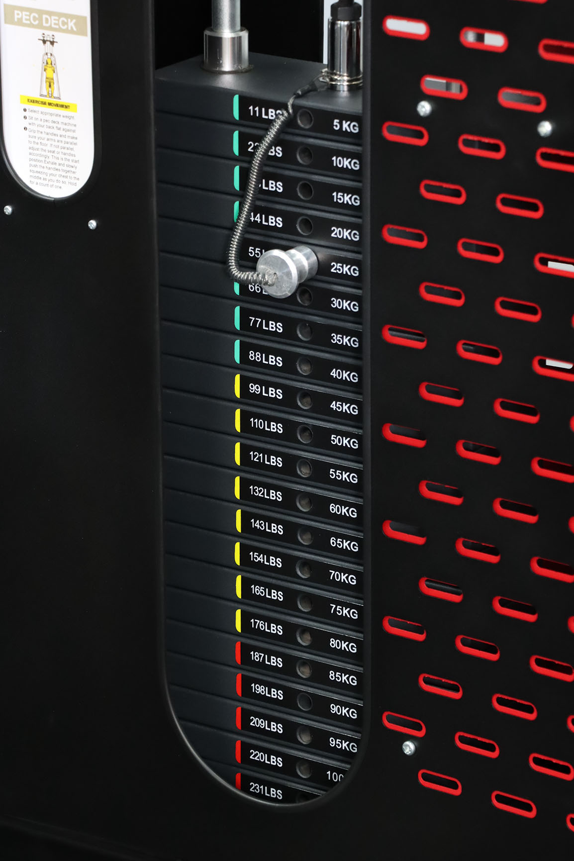 Constructed with a solid high-quality steel counterweight system, users can select weights from 5kg to 110kg in 5kg increments. Durable cushioning is provided at both the top and bottom of the weight stack, while aircraft-grade cables with 2,000 lb tensile strength ensure durability. Perfect for hotels, apartments, corporate gyms, PT studios, and home gyms.