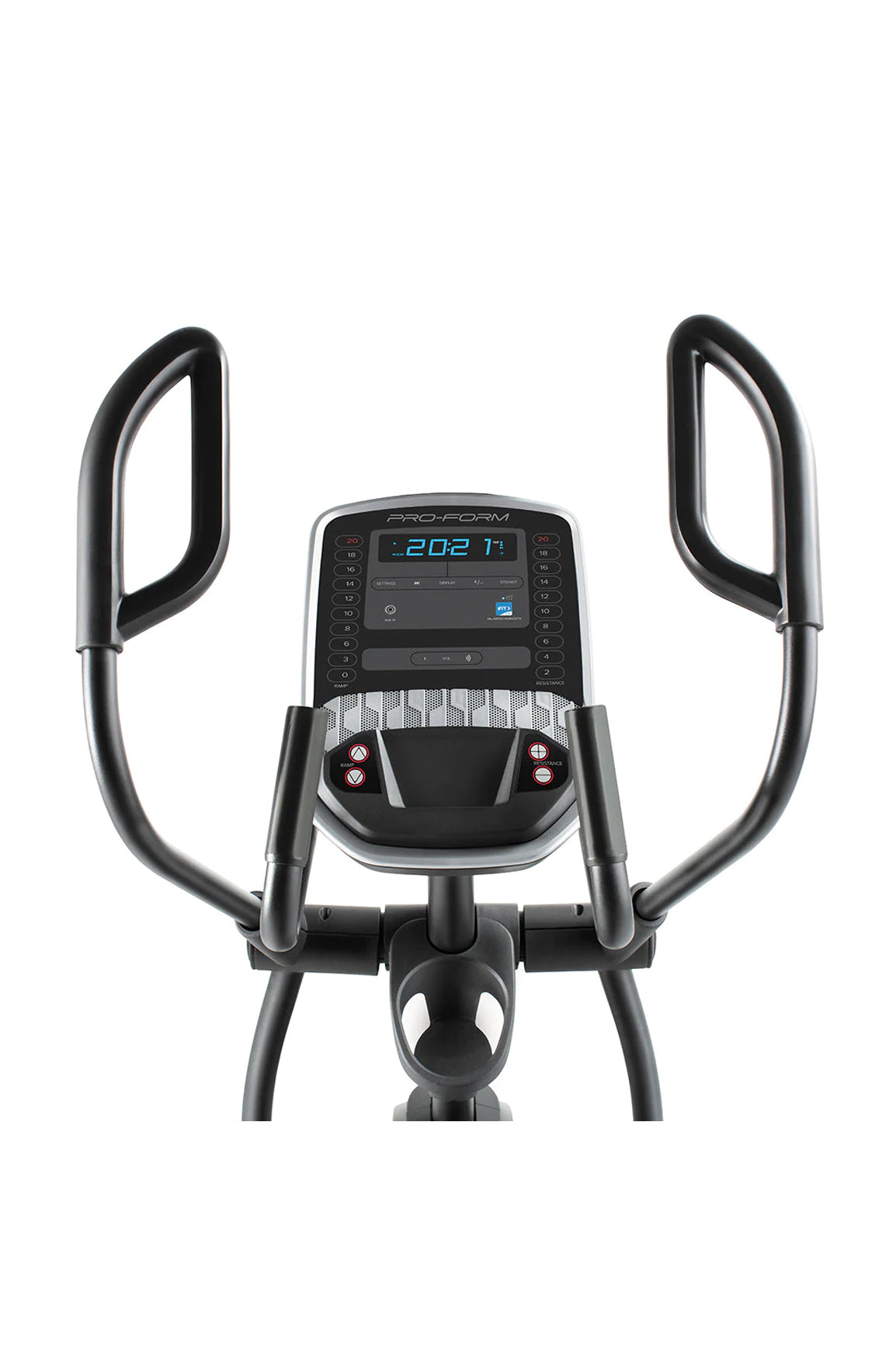 The ProForm Carbon EL5 Elliptical Trainer delivers a smooth, frictionless workout experience with adjustable resistance, power incline ramp, adjustable stride length, and built-in heart rate monitoring. The backlit RaceTrack-style display keeps your training data clear and easy to follow, while the music port and Intermix Acoustics 2.0 sound system enhance every session. Designed for home use.