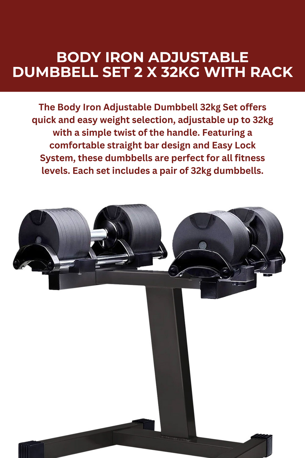 Body Iron Adjustable Dumbbell Set 2 X 32KG with Rack