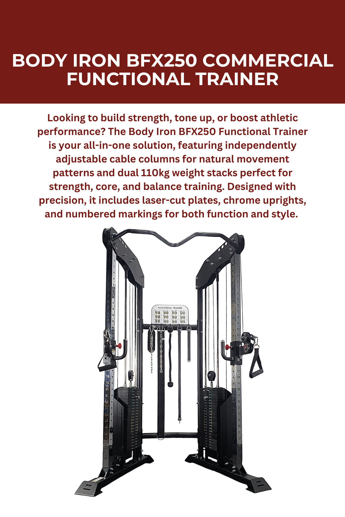 Looking to build strength, tone up or enhance your athletic performance? The Body Iron BFX250 Functional Trainer will get you there!