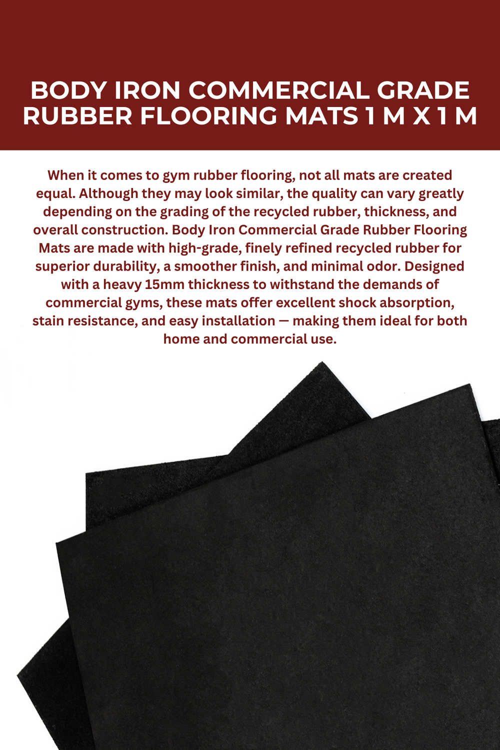 Body Iron Commercial Grade Rubber Flooring Mats 1 m x 1 m - 10 Square Meters