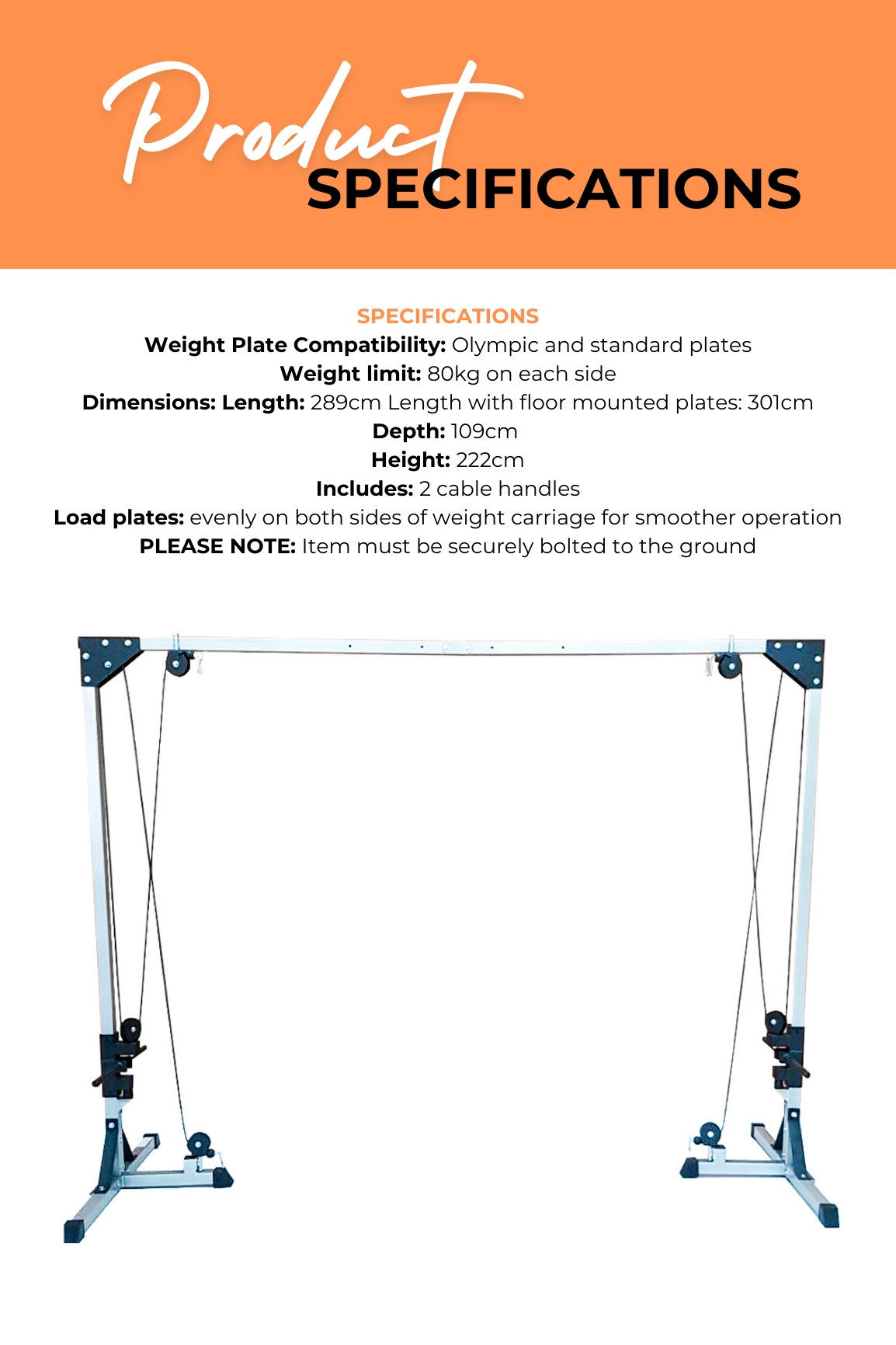 Built for smooth performance and long-term durability, it features large diameter pulleys and a carriage system designed to support consistent training at home.