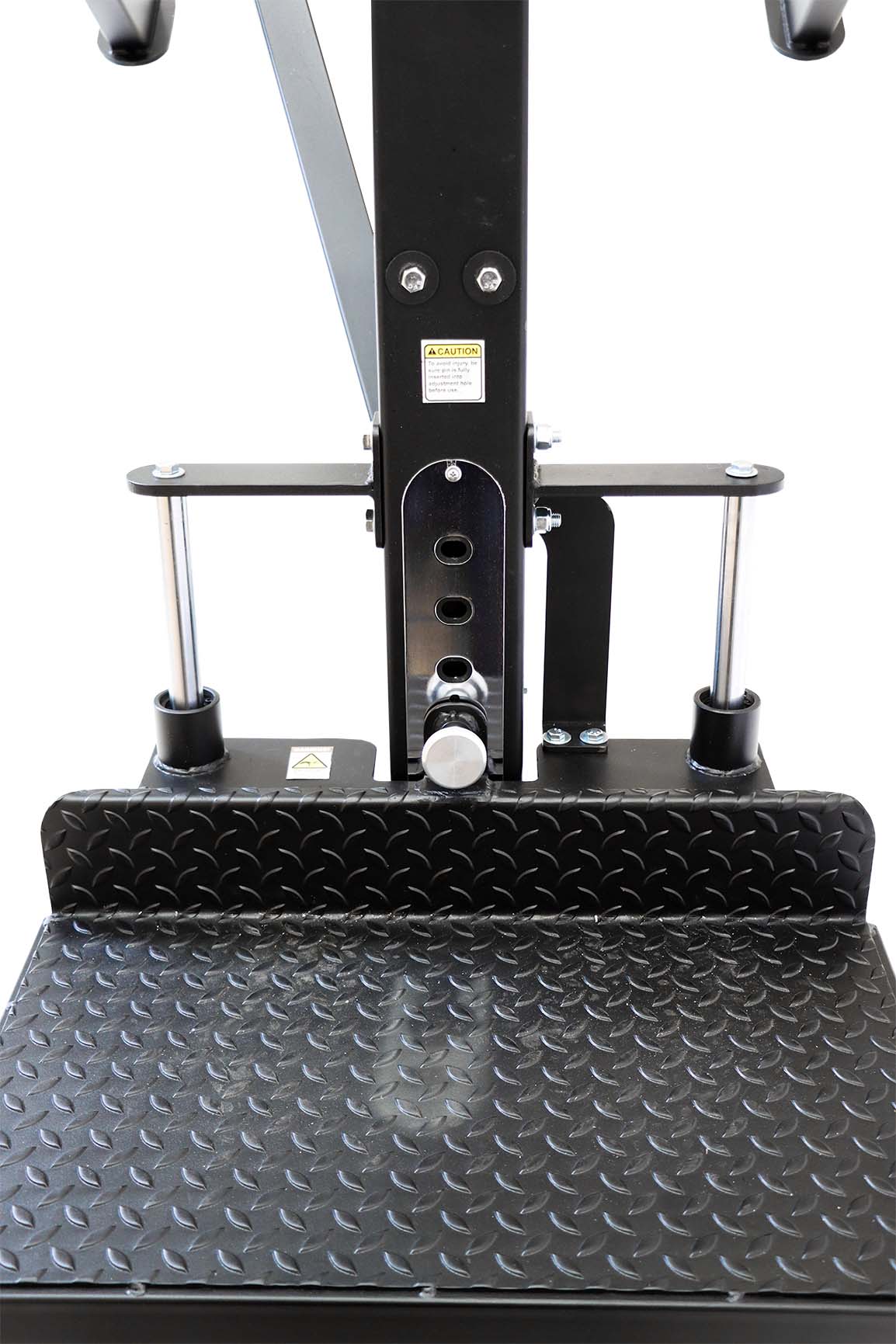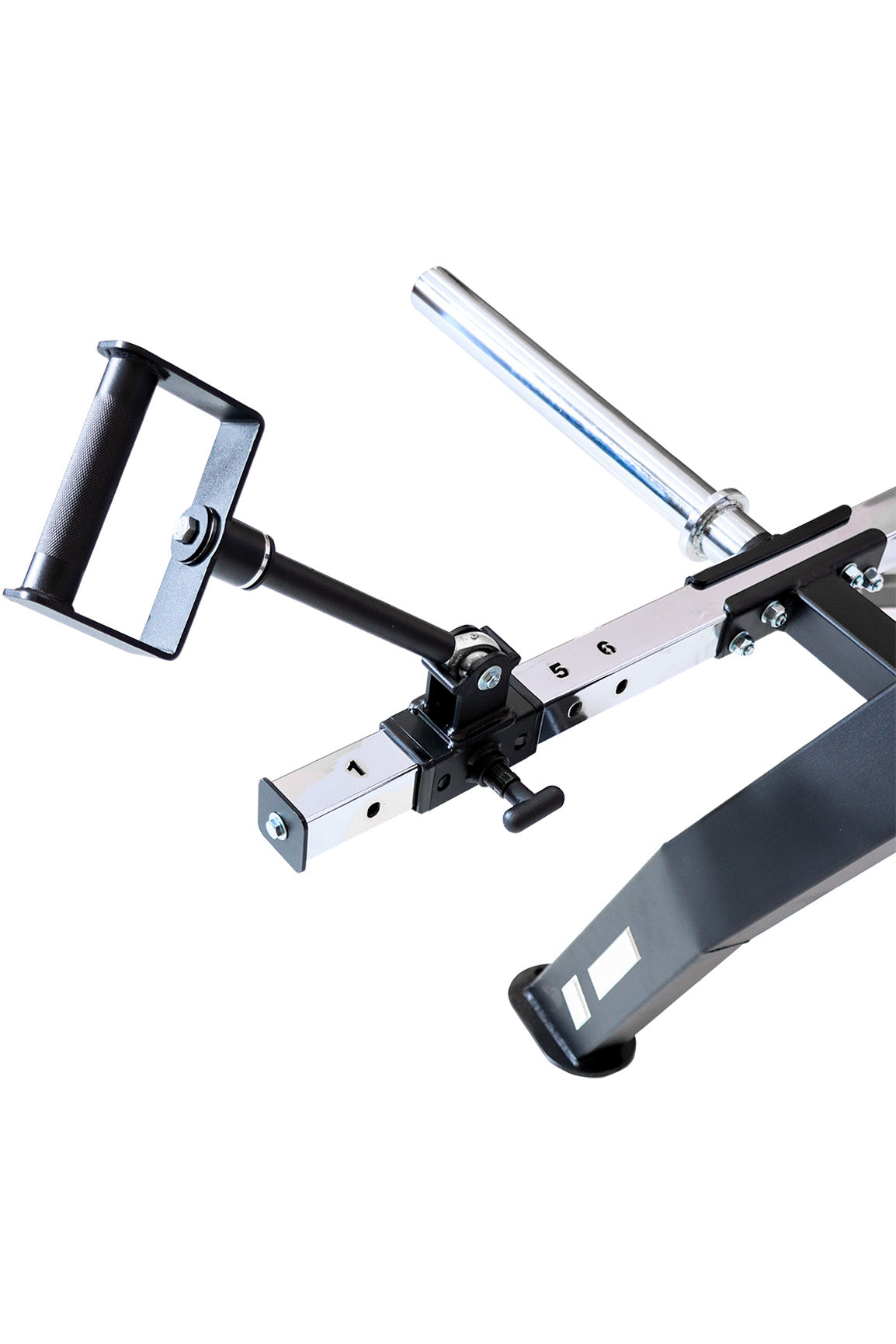 A large, non-slip footplate — adjustable for different heights — ensures a secure and comfortable stance during every rep. Widely recognised as a T-Bar Row, this incline bent over row is a staple for gyms and serious home setups alike, offering intense engagement of the lats, traps, rhomboids, and rear delts.
