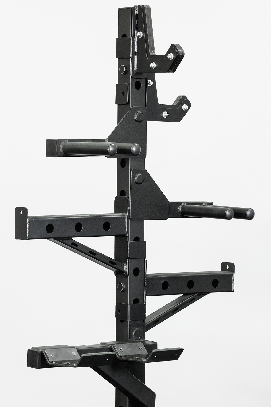 Whether you’re running a commercial gym or a premium home setup, this attachment tree can store it all dip bar attachments, J-hooks, sandwich J-cups & dumbbell holders, and many other rack-mounted accessories. No more cluttered floors or misplaced attachments—everything has a home.