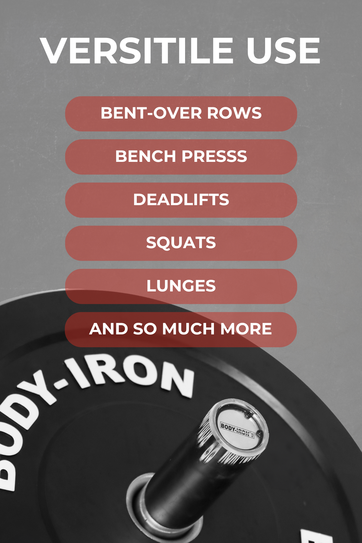 - White printed lettering with Body Iron branding