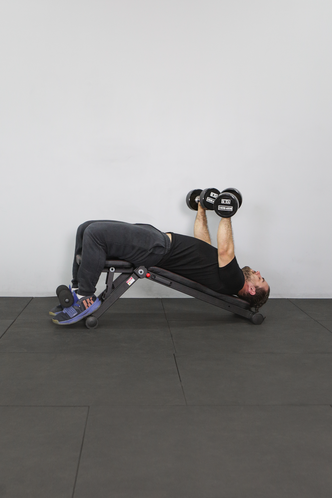 • Arms: Dumbbell curls, tricep extensions, skull crushers