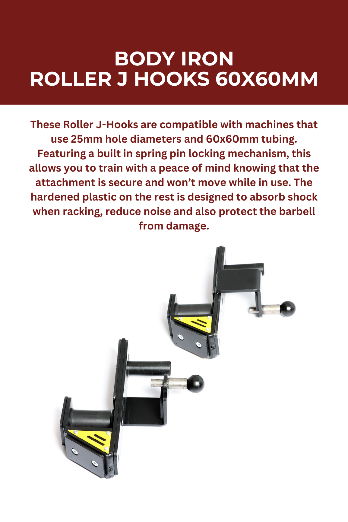 The Body Iron Roller J Hooks are the perfect upgrade to your power rack setup, giving you precise barbell placement, improved unracking, and superior stability for every lift.