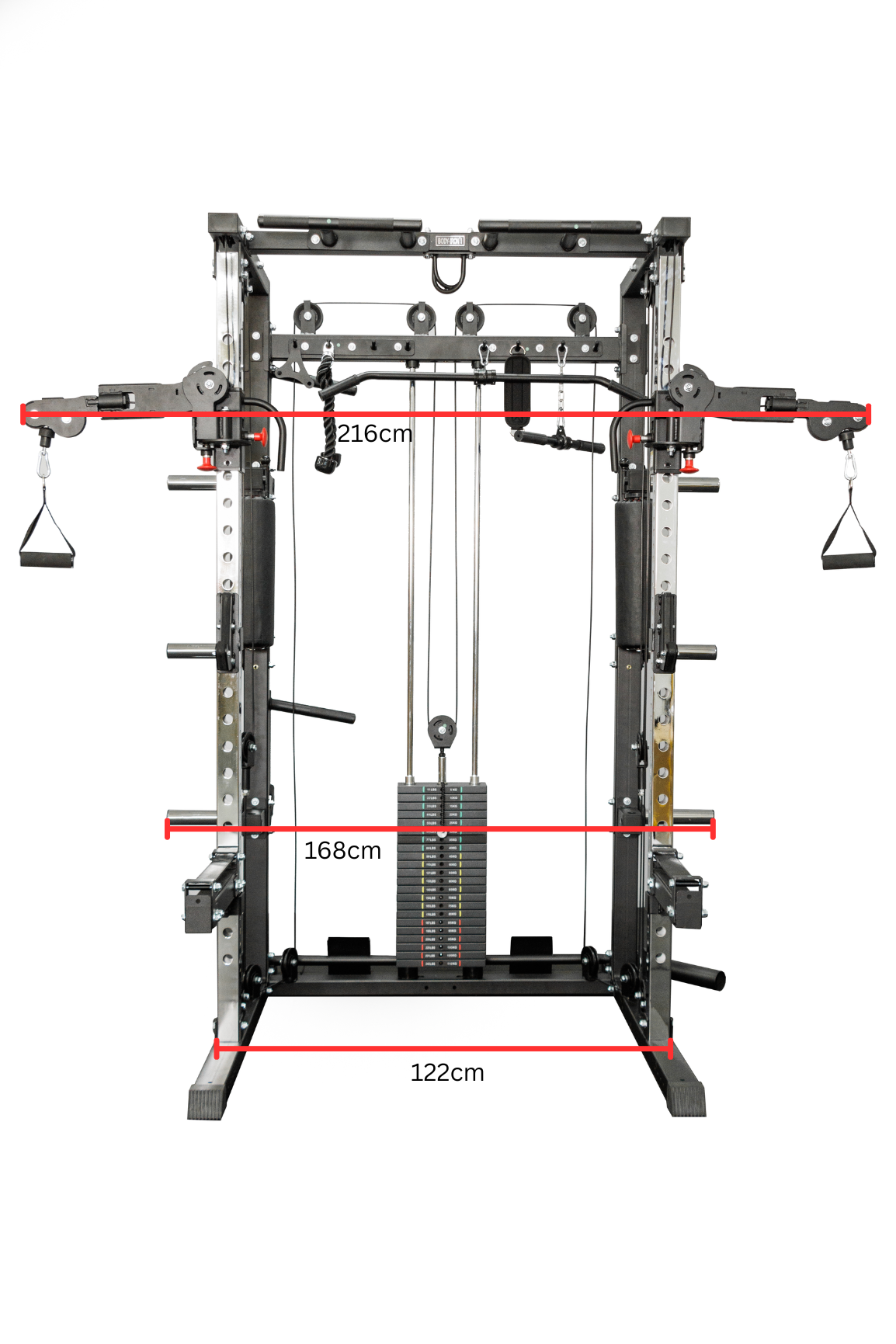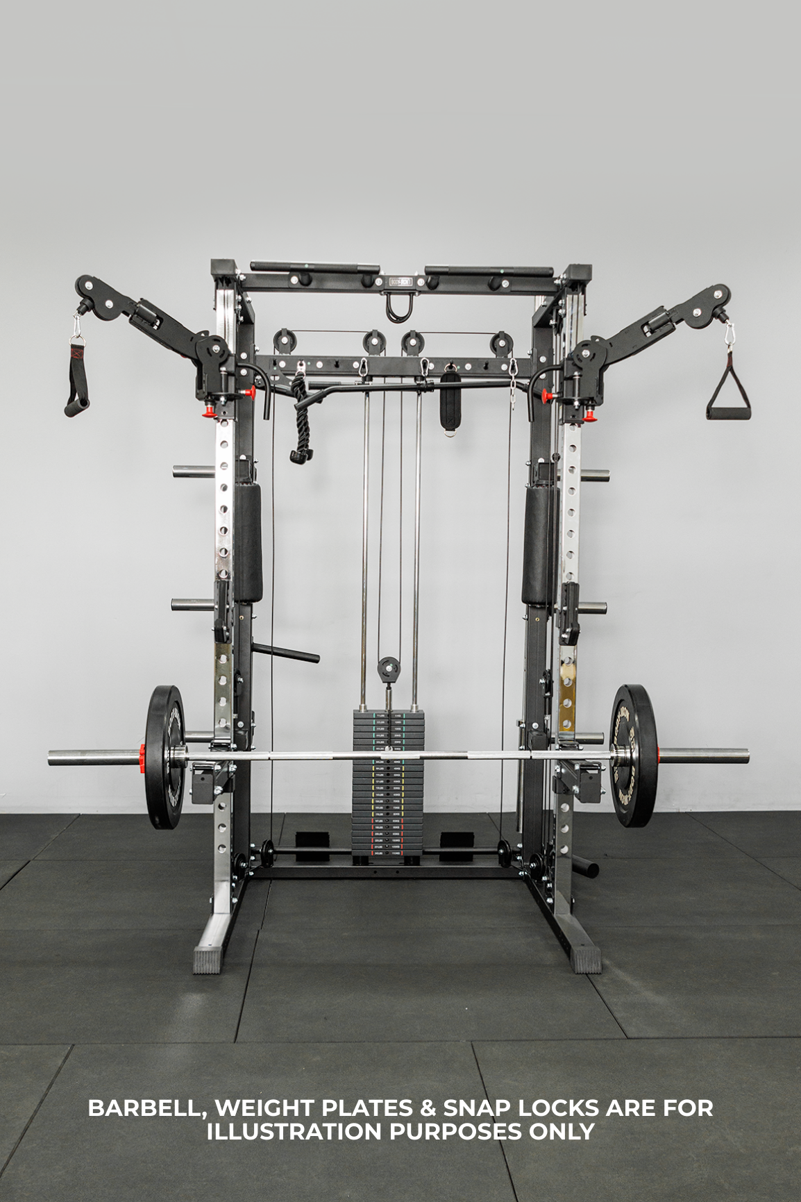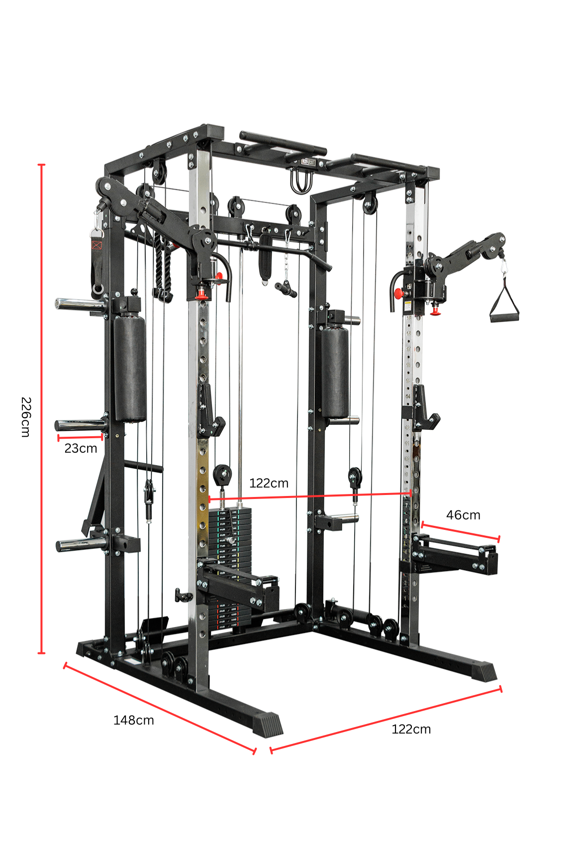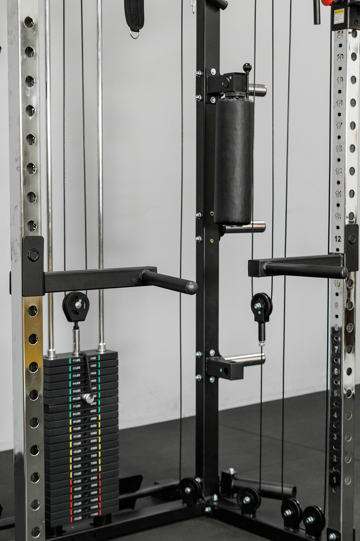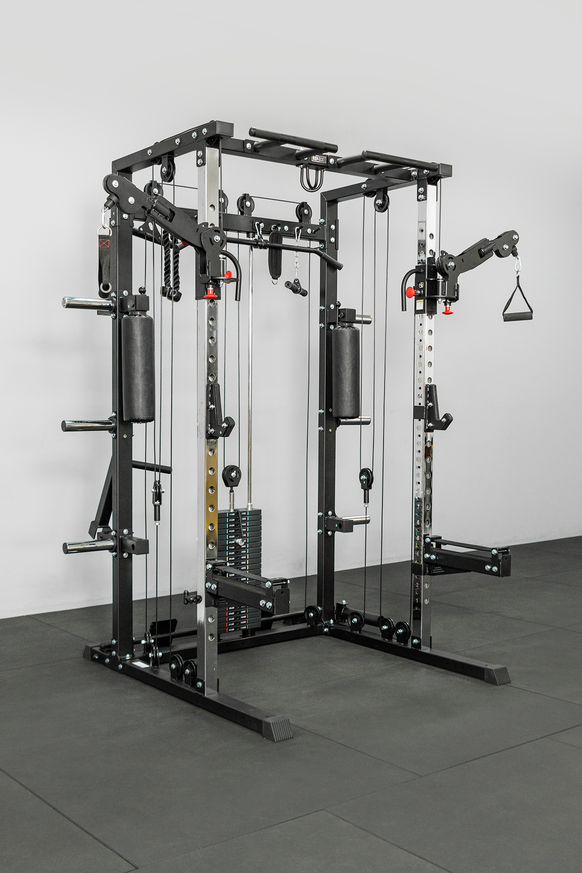 Lower body training is equally effective — perform squats, lunges, deadlifts, hip thrusts and more inside the rack, while the cable system allows isolation work, rehab training and high-rep functional movements.