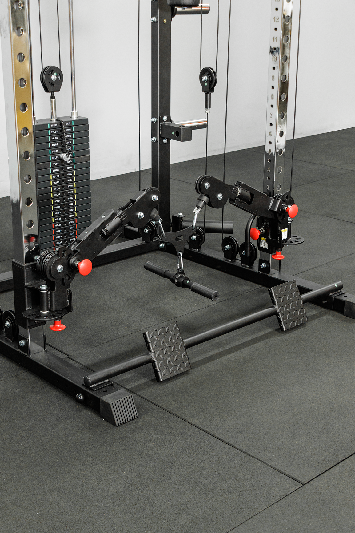 The Adjustable Dual Pulley Arms transform the X9 into a highly versatile cable system. With 4-way adjustability, you can open the arms outward for deeper chest fly stretches, bring them inward so the weight sits directly beneath you for controlled shoulder shrugs, or position them overhead for smooth lat pulldowns and vertical pulling movements.